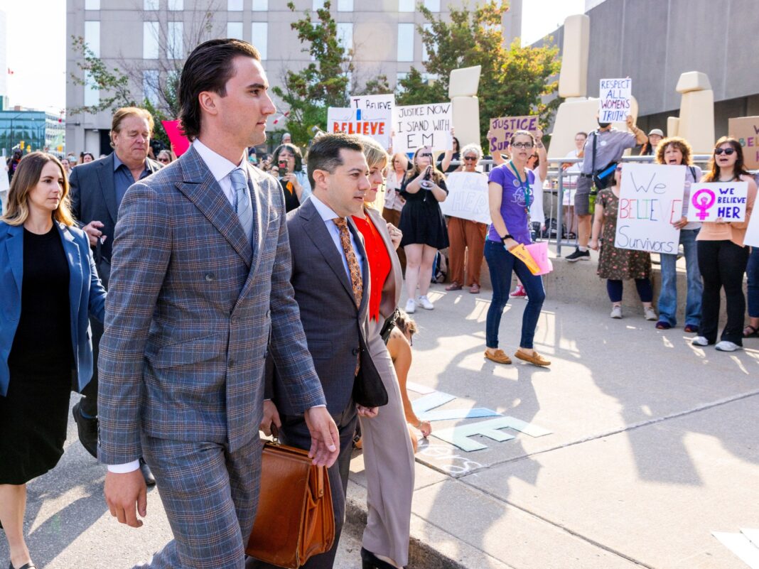 All five men – Michael McLeod, Alex Formenton, Dillon Dube, Carter Hart and Cal Foote – denied wrongdoing, stating that the alleged victim, EM, was a willing participant in sex acts at a hotel in London, Ontario, in 2018, following a team celebration.