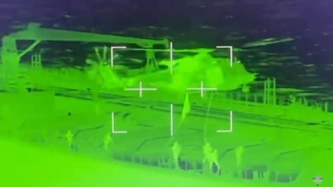 The joint Belgian-French raid on the Russian shadow fleet tanker Ethera. Pic: EmmanuelMacron/X