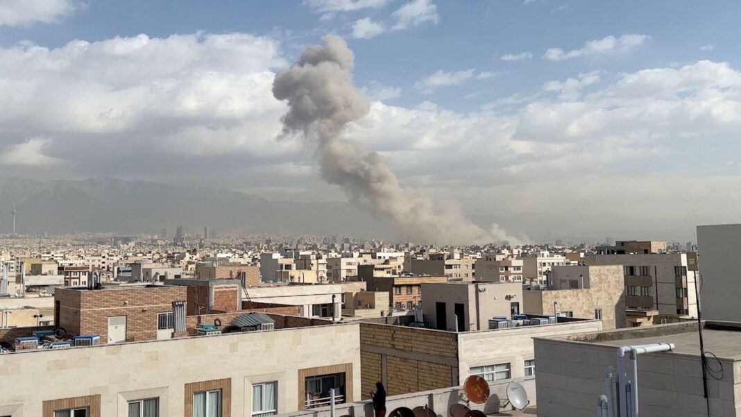 Smoke rises in Tehran after an airstrike. Pic: AP